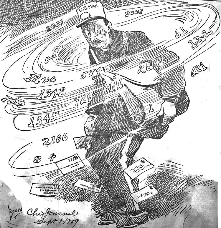 The City Council continued to argue about the best way to renumber and rename streets. The cost of $1-$2 per house was causing major delays. Aldermen across the city made suggestions for their wards that the Chicago Tribune labelled as “ schemes that are as plain as the Chinese language suggested to simplify Chicago’s street number”.