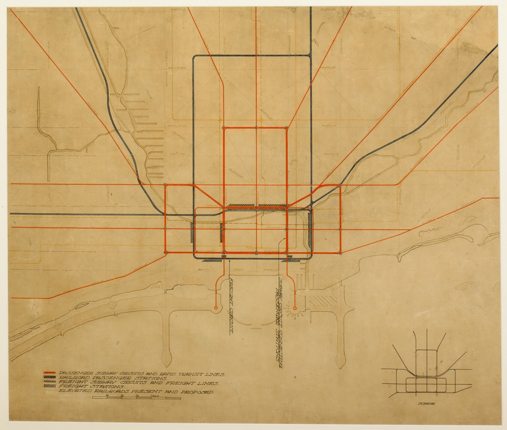 There was an urgent need to clearly separate people from the freight that moved through the city. The Plan suggested three main action items; widening of avenues, building up of a city civic center, creating a depot for all rail cars that otherwise would park around the city blocking other trains. The tracks were arguably the most important since the way they had been laid out caused traffic and avoidable accidents. Different rail companies were laying down their own tracks and The Plan suggested that it was now time for them to use the same tracks in a unified system. .